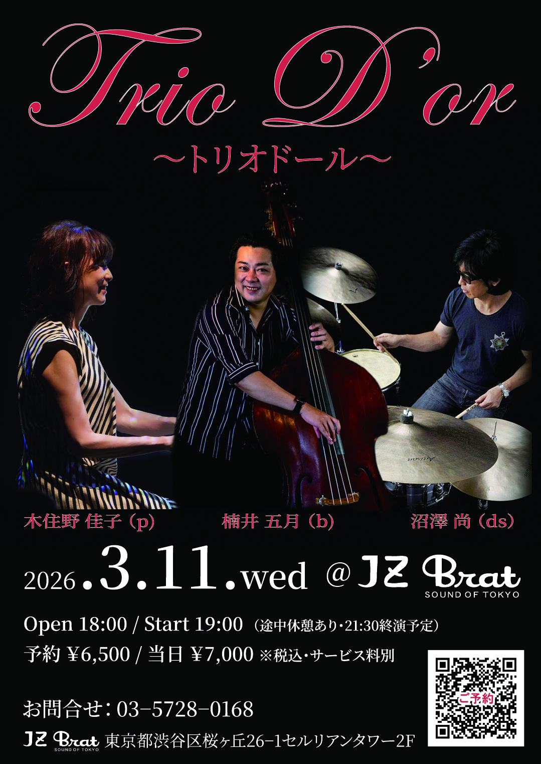 ● 3月11日(水)渋谷・JZ Brat「Trio D'or」