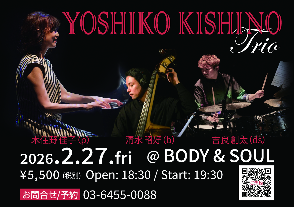 木住野佳子 (p) / 清水昭好(b) / 吉良創太(ds)